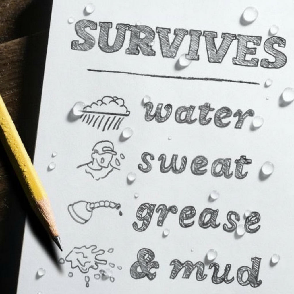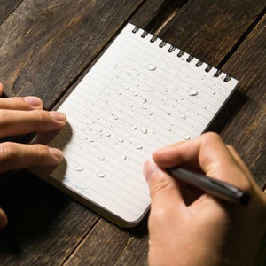 Het grote voordeel van dit notebook is het waterbestendige all-weather papier. Dit papier scheurt niet wanneer het nat wordt en behoudt zijn structuur, zodat je zonder zorgen kunt blijven schrijven. Ideaal voor buitensporters, professionals in het veld en iedereen die niet afhankelijk wil zijn van droge omstandigheden.