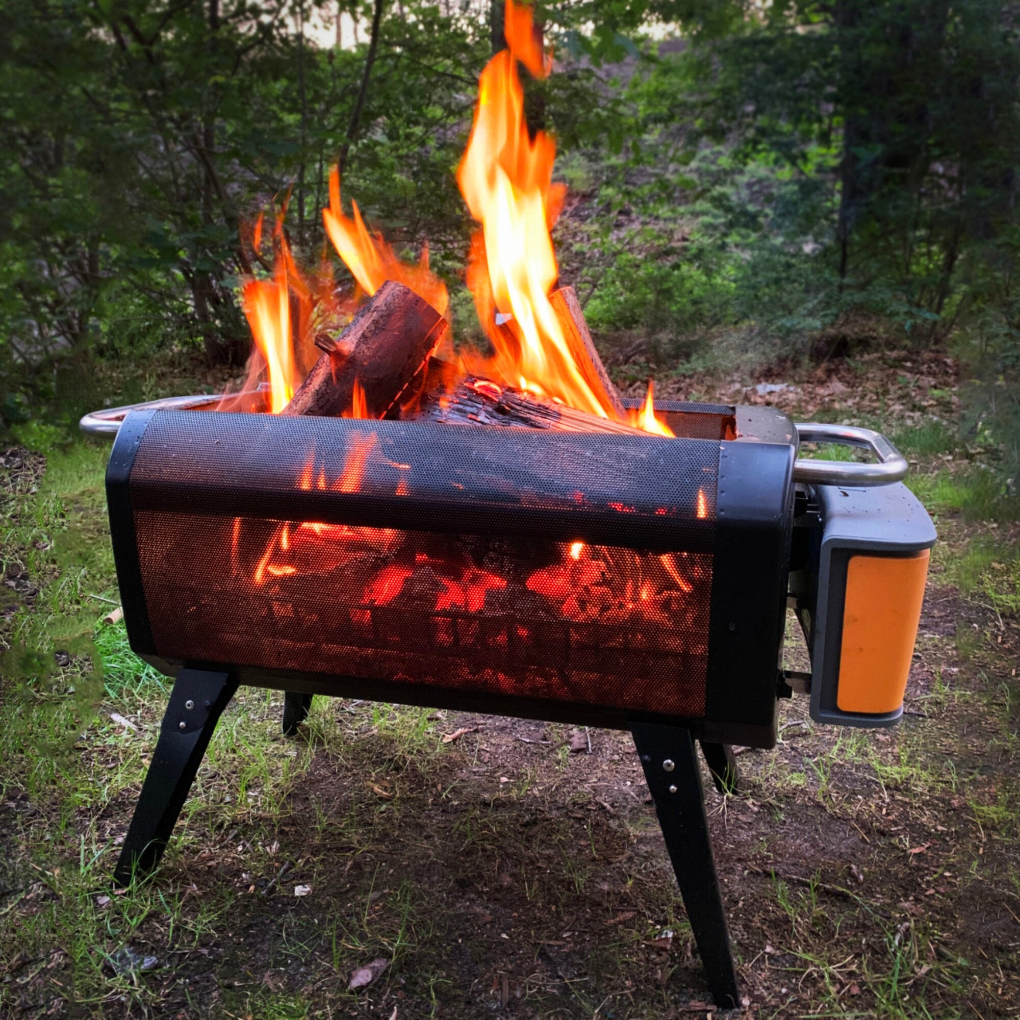 Gebruik daarna de ingebouwde ventilator om de luchttoevoer naar wens te regelen. Hierdoor brandt het vuur krachtiger en efficiënter, met aanzienlijk minder rookontwikkeling dan bij een traditioneel kampvuur.