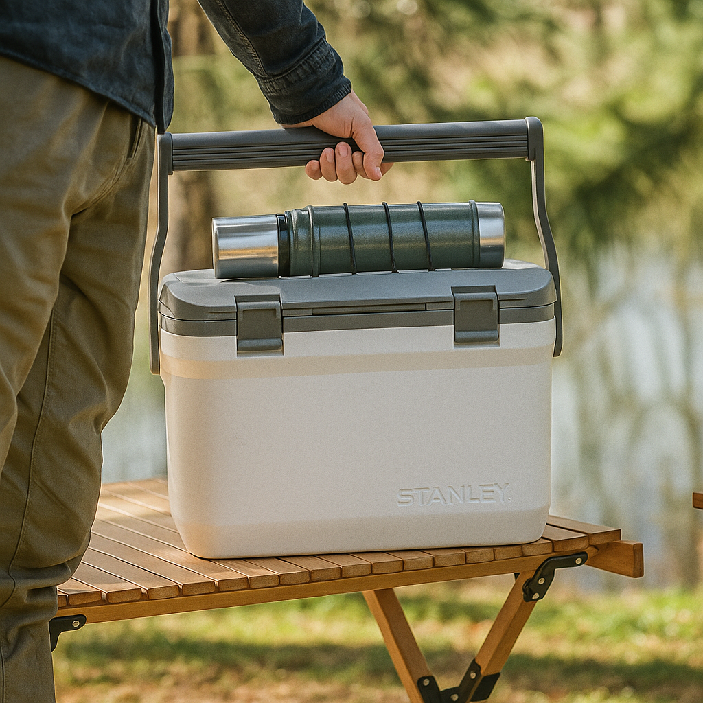 Stanley The Easy Carry bewijst zich hier opnieuw. Hij past in vrijwel elke auto, houdt flessen rechtop en blijft urenlang koel, zelfs in de volle zon. De dikke wanden en stevige rubberafdichting voorkomen dat warmte binnendringt, terwijl het compacte formaat ideaal is voor een dag buiten.