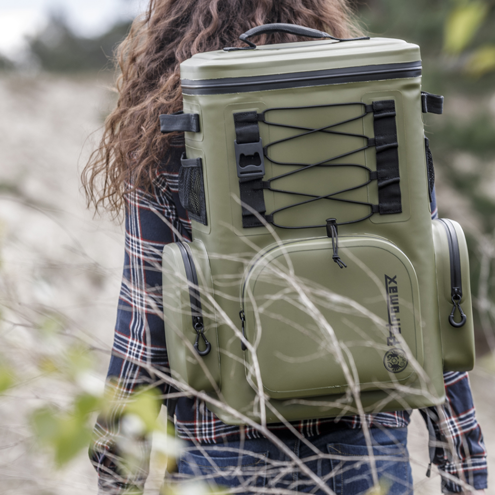 De volledig geïsoleerde binnenkant houdt je eten en drinken tot zes dagen koud. De buitenkant is waterafstotend en scheurvast, zodat hij tegen regen en ruig terrein kan. Dankzij de gewatteerde schouderbanden draag je hem comfortabel, ook wanneer hij vol zit.