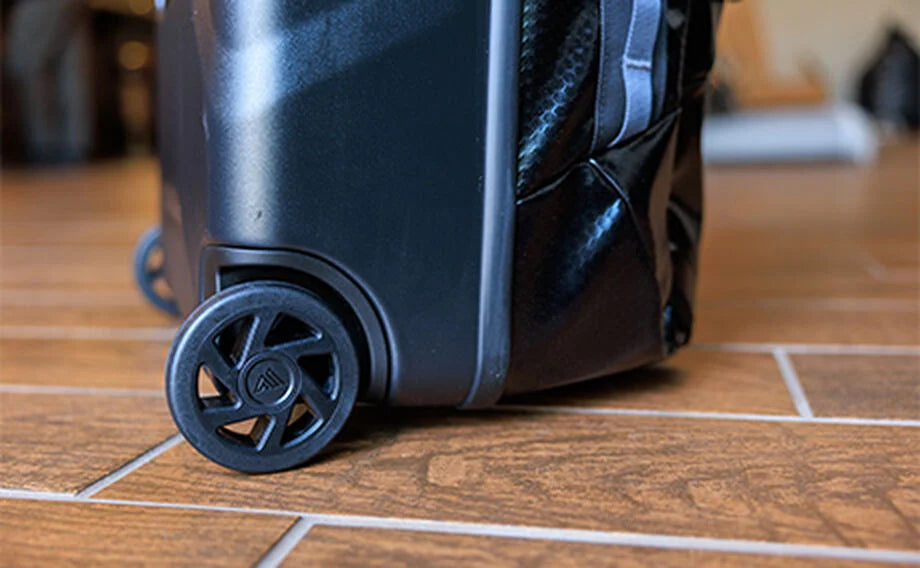 Mobiliteit is essentieel voor de actieve reiziger. Daarom is de Alpaca Wheeled Duffel uitgerust met robuuste wielen van 85 millimeter. Deze zijn aanzienlijk groter dan standaard kofferwieltjes, waardoor ze moeiteloos over grind, kasseien en onverharde paden rollen. De brede telescopische trekstang zorgt voor optimale controle en voorkomt dat de tas tegen je hielen stoot tijdens het lopen. Dankzij de verstevigde handgrepen aan alle zijden til je de tas bovendien makkelijk in een auto of van de bagageband.