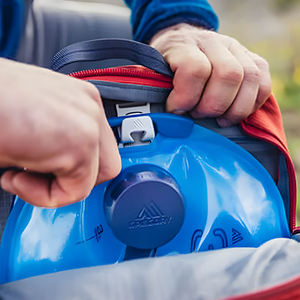 Gebruiksgemak staat centraal bij de 3D Hydro Trek. De grote vulopening is voorzien van een stevig handvat, waardoor je de zak makkelijk onder een kraan of in een beek kunt vullen. Het SpeedClip-bevestigingssysteem zorgt ervoor dat je de zak met één hand in compatibele Gregory-rugzakken klikt. Ook aan de details is gedacht: het magnetische bijtventiel klikt vast aan je borstband zodat de slang niet rondzwaait tijdens het lopen. Het gebruikte materiaal is niet alleen robuust, maar ook smaakneutraal, zodat je water altijd fris blijft smaken.