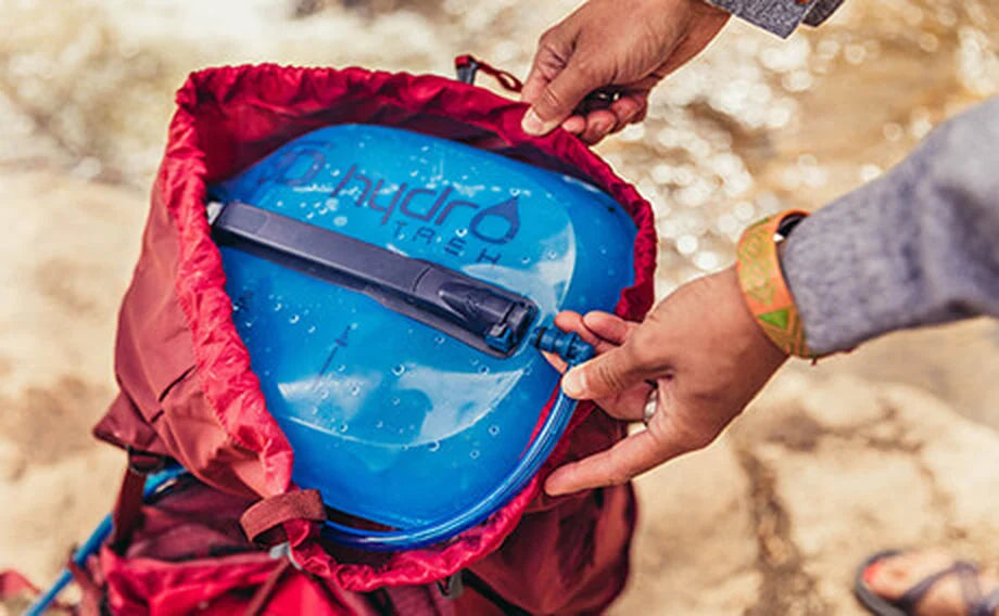 Het meest opvallende kenmerk is de vorm. In tegenstelling tot platte zakken, heeft de 3D Hydro Trek een zachte, voorgevormde structuur. Dit zorgt ervoor dat de zak open blijft staan als hij leeg is, vergelijkbaar met een fles. Hierdoor kunnen de binnenwanden elkaar niet raken, wat de luchtcirculatie bevordert. Het resultaat is de 'QuickDry'-technologie: de zak droogt vele malen sneller dan standaard reservoirs, wat de kans op bacterievorming en nare geurtjes drastisch vermindert. Bovendien is de rondere, compacte vorm specifiek ontworpen om bovenop je uitrusting in de rugzak te liggen, zodat je zware watergewicht dicht bij je rug en hoog in de tas blijft voor een betere balans.