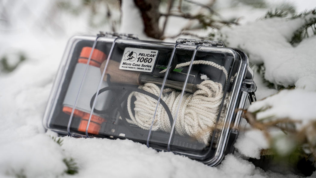 De Micro Case 1050 is uitgerust met een stevige sluiting die eenvoudig te openen is maar altijd goed afsluit. De meegeleverde karabijnhaak maakt het mogelijk om de case aan een rugzak, riem of uitrusting te bevestigen, zodat je jouw spullen altijd binnen handbereik hebt.